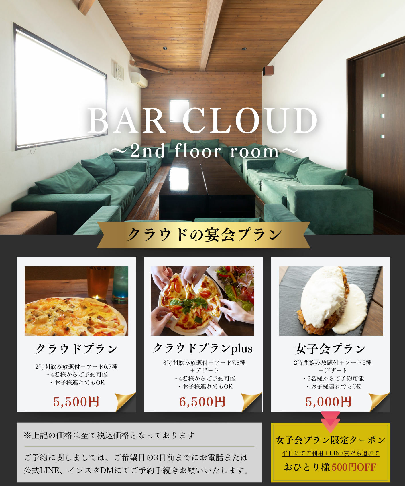 以上、クラウドの宴会プランのご紹介でした!いかがでしたでしょうか。
